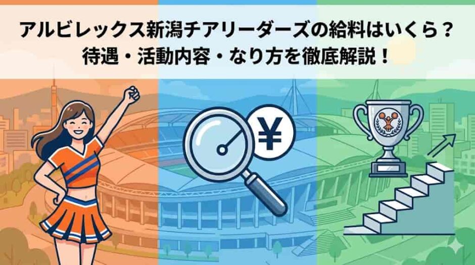 「アルビレックスのチアリーダーって給料はどれくらいもらえるの?」「プロチアリーダーとして生活できるの?」「なるにはどうすればいいの?」——スタジアムやアリーナで華やかなパフォーマンスを披露するアルビレックスチアリーダーズへの疑問や憧れを持つ方は多いです。この記事では、アルビレックスチアリーダーズの給料(報酬)・待遇・活動内容・なり方まで、公式情報をもとに徹底解説します。チアリーダーとしての給料の実態と、プロスポーツのチアリーダー全体の業界相場まで合わせてお伝えします。