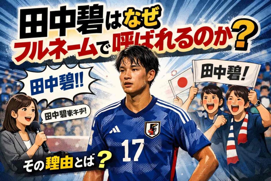 サッカー日本代表やリーズの試合を見ていると、実況アナウンサーが「田中碧!」とフルネームで叫ぶ場面が自然と耳に残ります。他の選手は苗字だけで呼ばれることが多いのに、なぜ田中碧だけはフルネームなのでしょうか。この記事では、田中碧がなぜフルネームで呼ばれるのかという疑問を、言語的・文化的・状況的な観点から徹底的に掘り下げます。名前の由来や選手プロフィールとあわせて、ファンも知らなかった視点をまじえながらわかりやすく解説していきます。