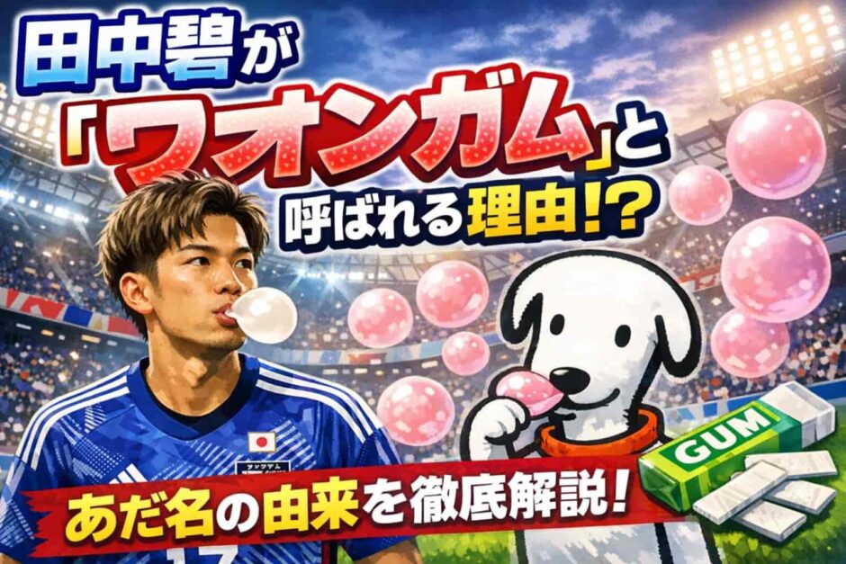 「ワオンガム」という愛称をご存じでしょうか。日本代表MF田中碧選手がSNSを中心にそう呼ばれるようになり、いまやサッカーファンの間で広く定着した呼び名です。なぜそんな名前がついたのか、その背景にある彼の実力と成長の軌跡を、まとめて解説します。