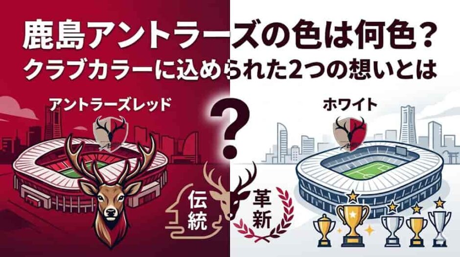 「鹿島アントラーズの色って正式には何色なの?」「なんであの深い赤色なのか知りたい」「ユニフォームのネイビーにも意味があるって本当?」——鹿島アントラーズのあの印象的な深紅には、単なる「かっこいいから赤」では終わらない、茨城の大地と海と歴史が凝縮された深いコンセプトがあります。この記事では、鹿島アントラーズのクラブカラーの正式名称・由来・ユニフォームを彩る色の変遷・他クラブとの色の比較まで、「鹿島アントラーズの色」にまつわるすべてを徹底解説します。