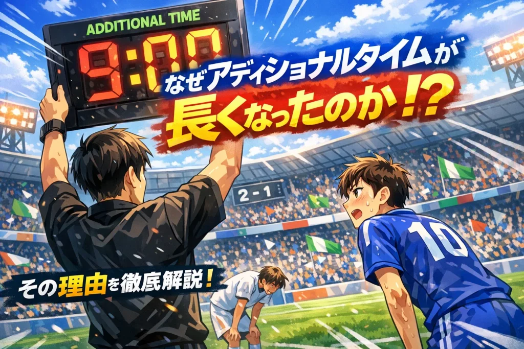 「あれ、また5分も追加されるの?」サッカーの試合を観ていて、アディショナルタイムの長さに驚いたことはありませんか?近年、サッカー アディショナルタイム なぜこんなに長くなったのか、多くのファンが疑問に感じています。2022年のカタールW杯以降、平均10分を超えるアディショナルタイムも珍しくなくなりました。