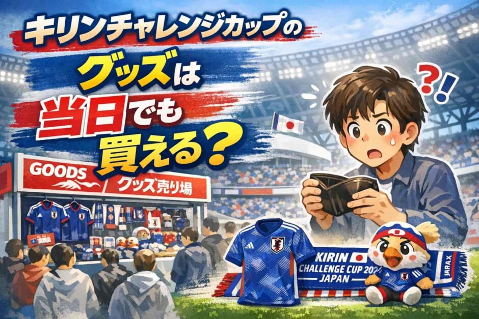 キリンチャレンジカップ当日、会場でグッズを買いたいけれど何時から売っているのか、どんな種類があるのか、売り切れないか不安——そんな疑問を持つ方に向けて、当日のグッズ購入に必要な情報をまとめました。