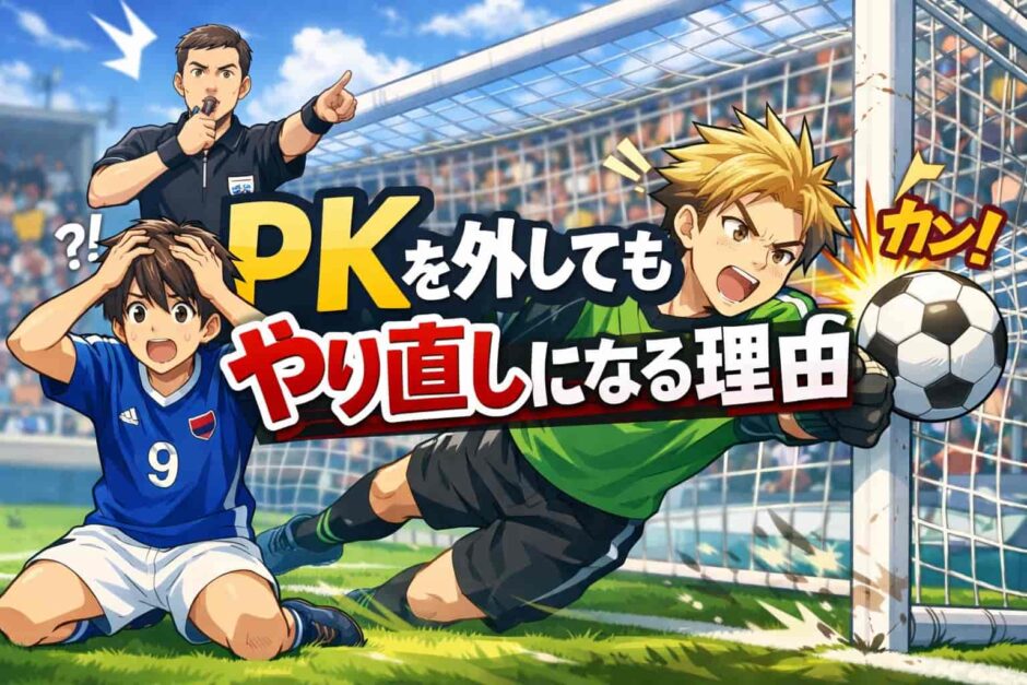 PKのやり直しルールは、一見複雑に見えますが「どちらが反則して、どちらが損をしたか」という基本原則を押さえておくと、試合中の場面をずっとスムーズに理解できるようになります。次にPKやり直しの場面に出会ったときは、「ゴールが決まったかどうか」「どちらの選手が何をしたか」という視点で見てみてください。審判の判断の意味が、きっと手に取るように分かるはずです。