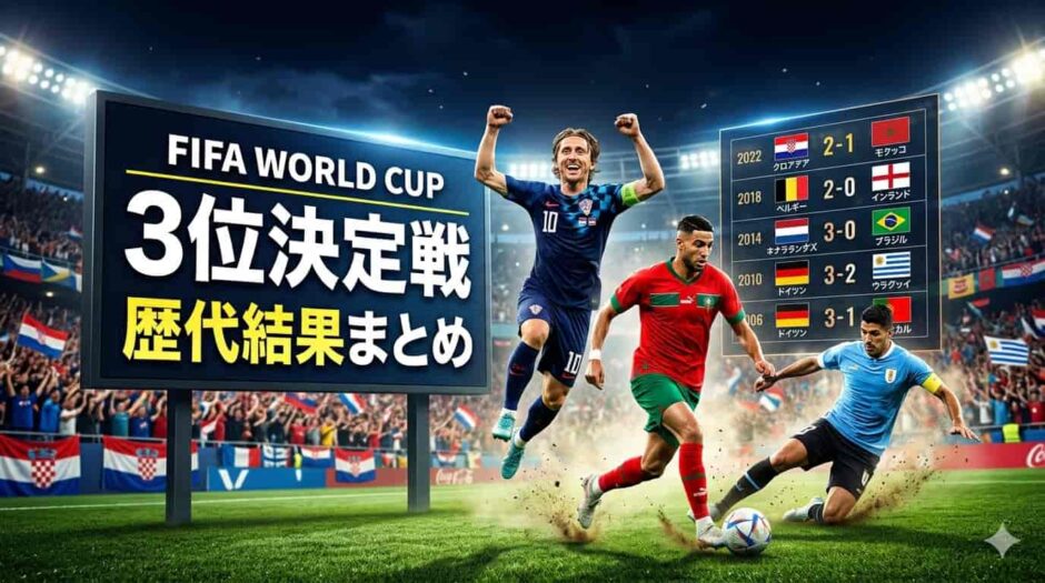 この記事では、ワールドカップ3位決定戦の歴史・歴代全結果・廃止論の背景・注目の記録まで、あらゆる角度から徹底解説します。「意味があるのか?」という疑問への答えも含めて、W杯3位決定戦のすべてをお届けします。